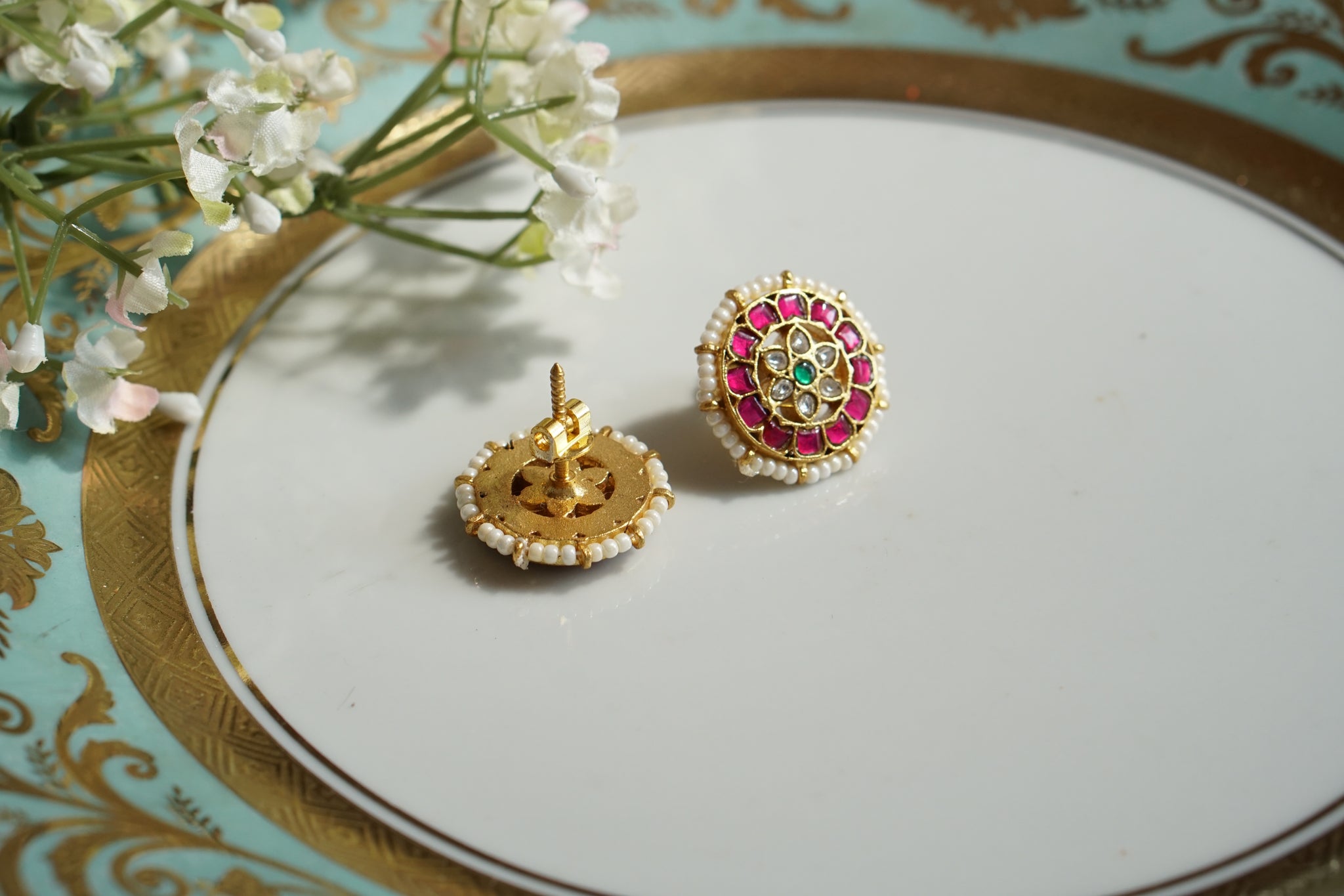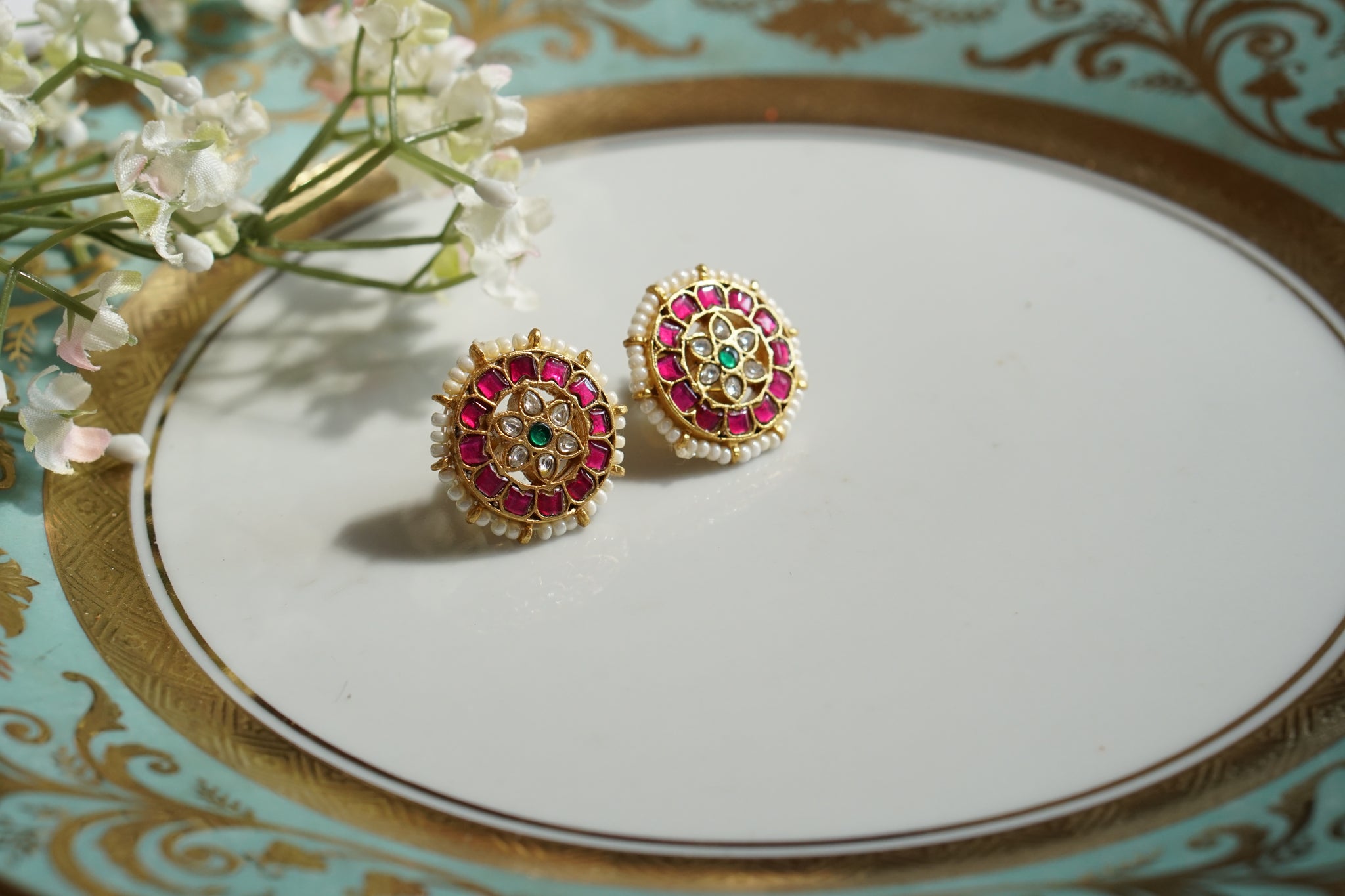 Pink & White Kundan Studs (1-4678)(K)