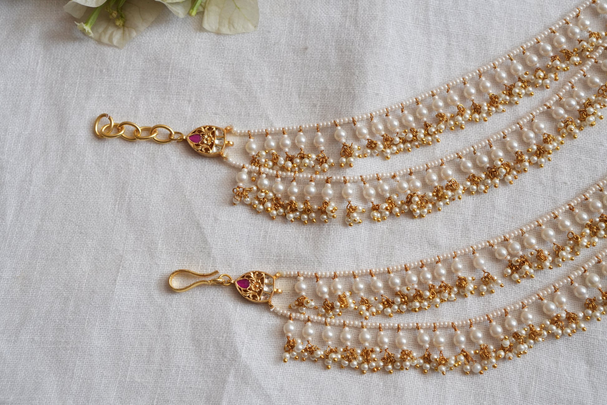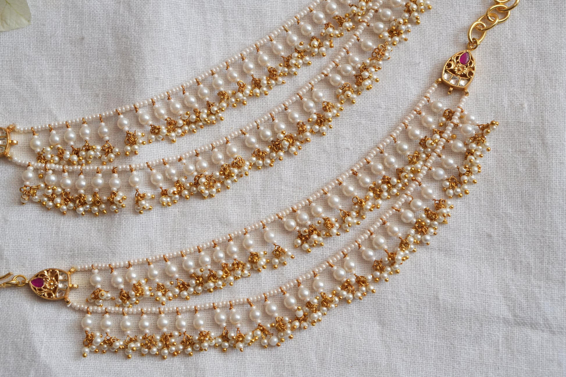 Featuring gold polished Kundan Beads earchain studded in brass metal.