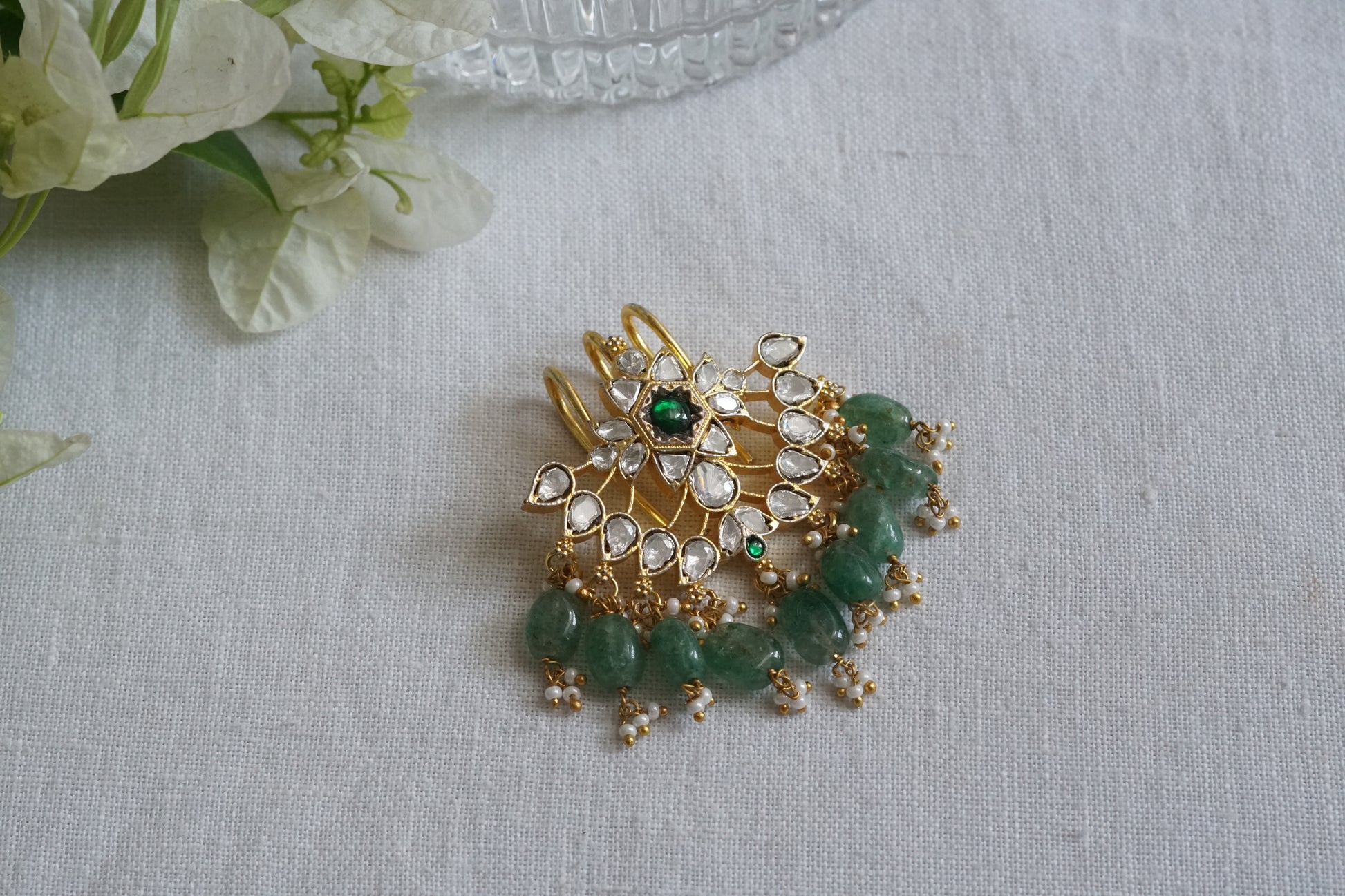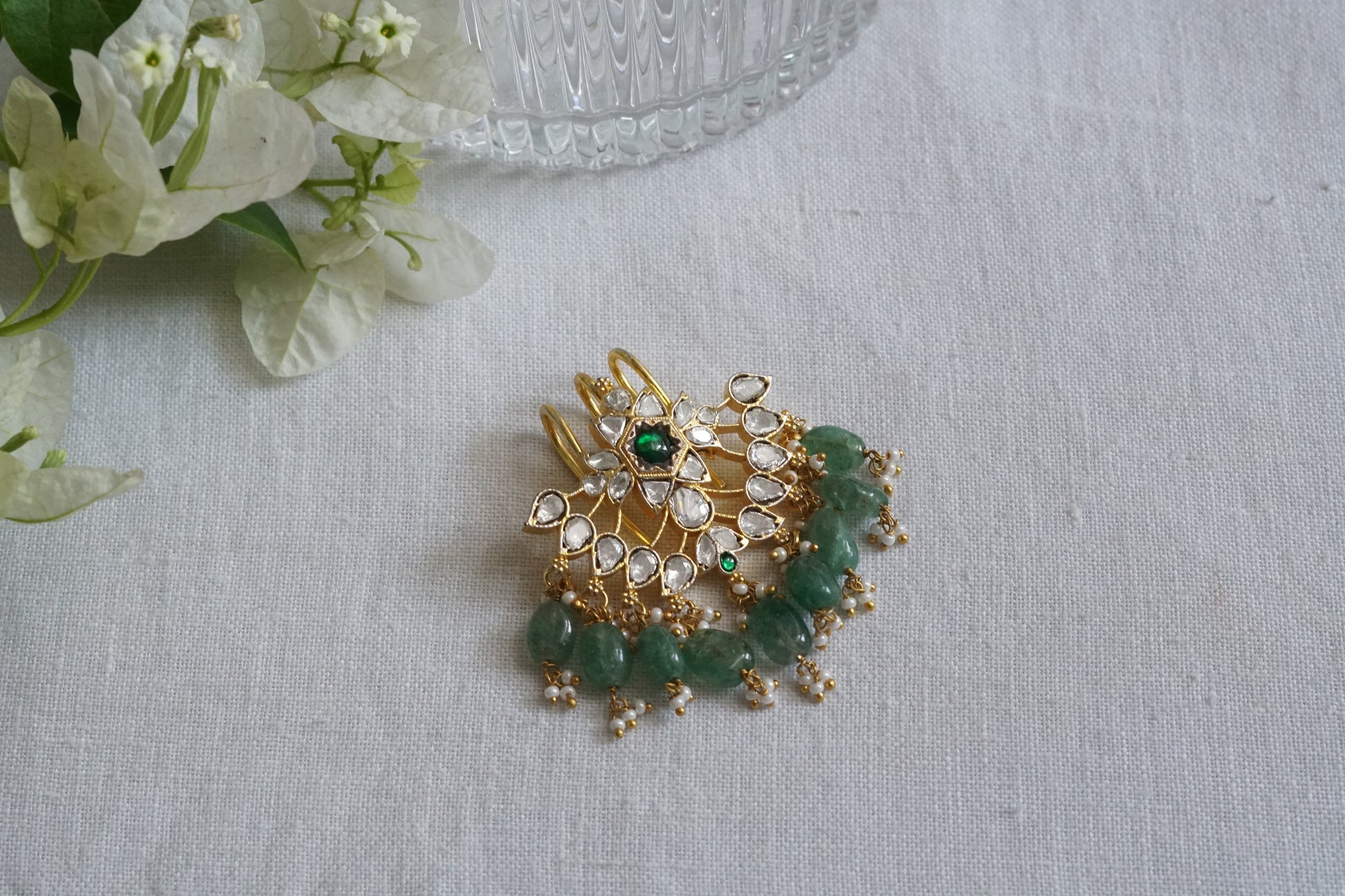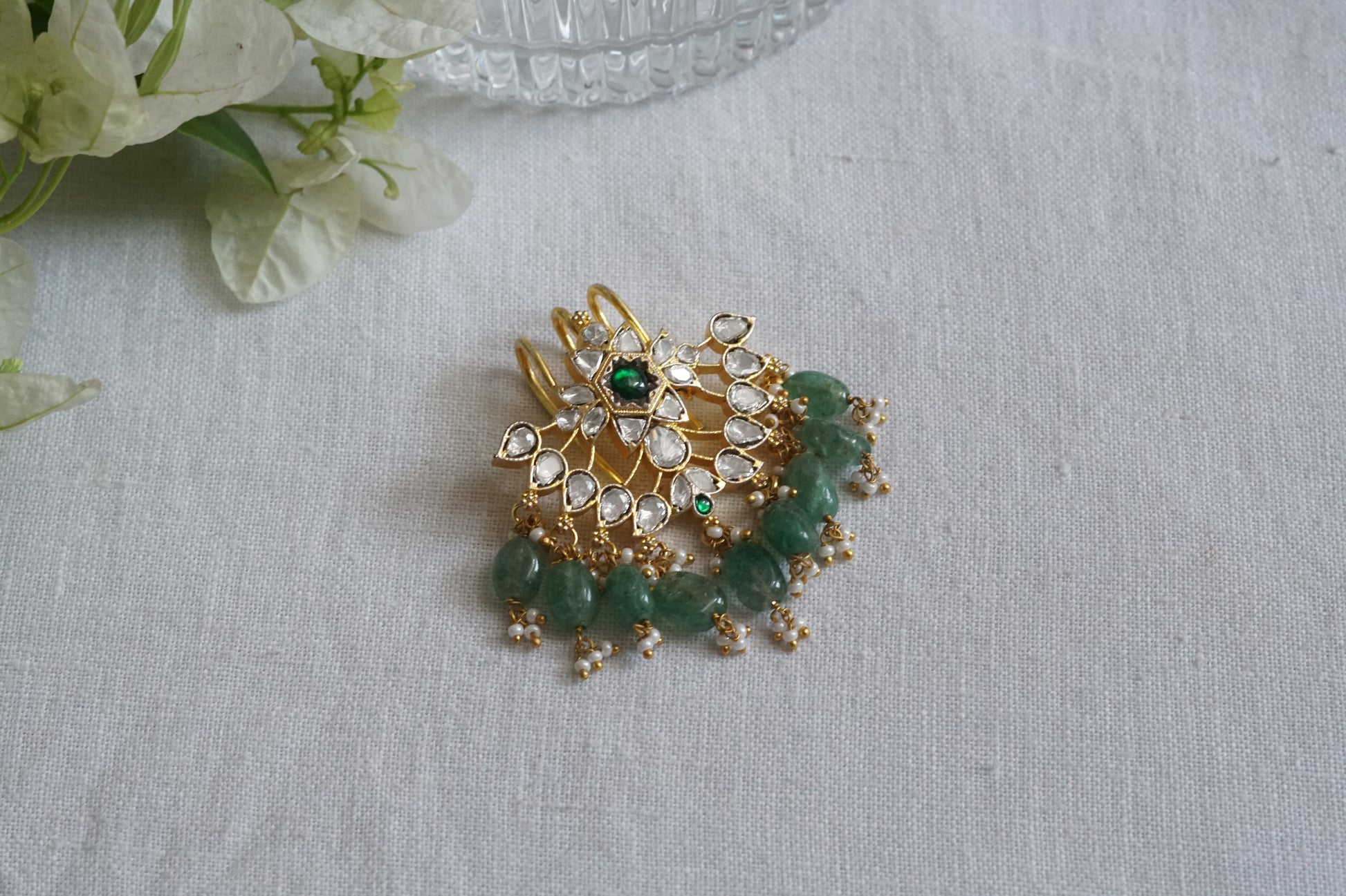 Featuring gold polished real Mossainite Studded Mossainite Hairpin in silver mixed with brass metal.