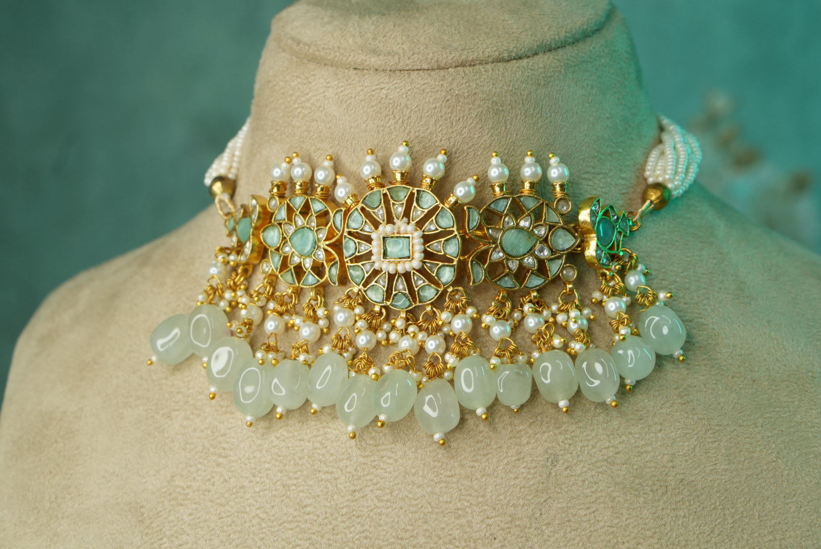 Featuring gold polished Kundan Choker Set in silver mixed with brass metal