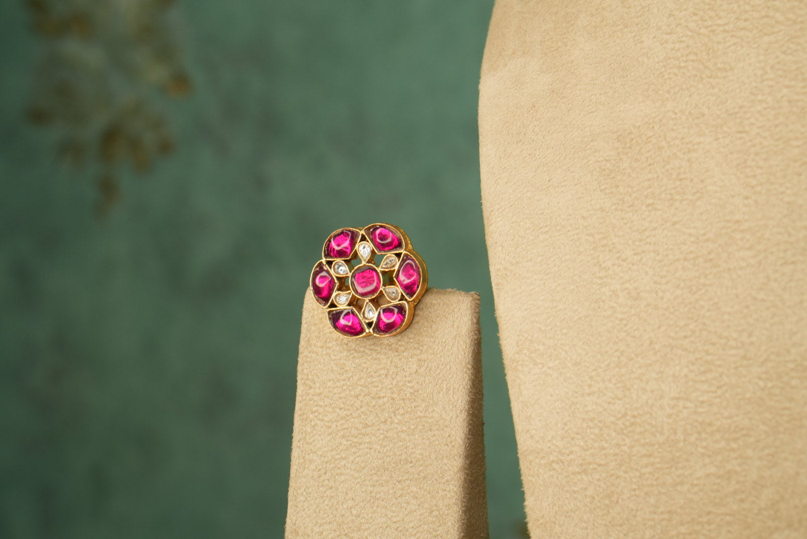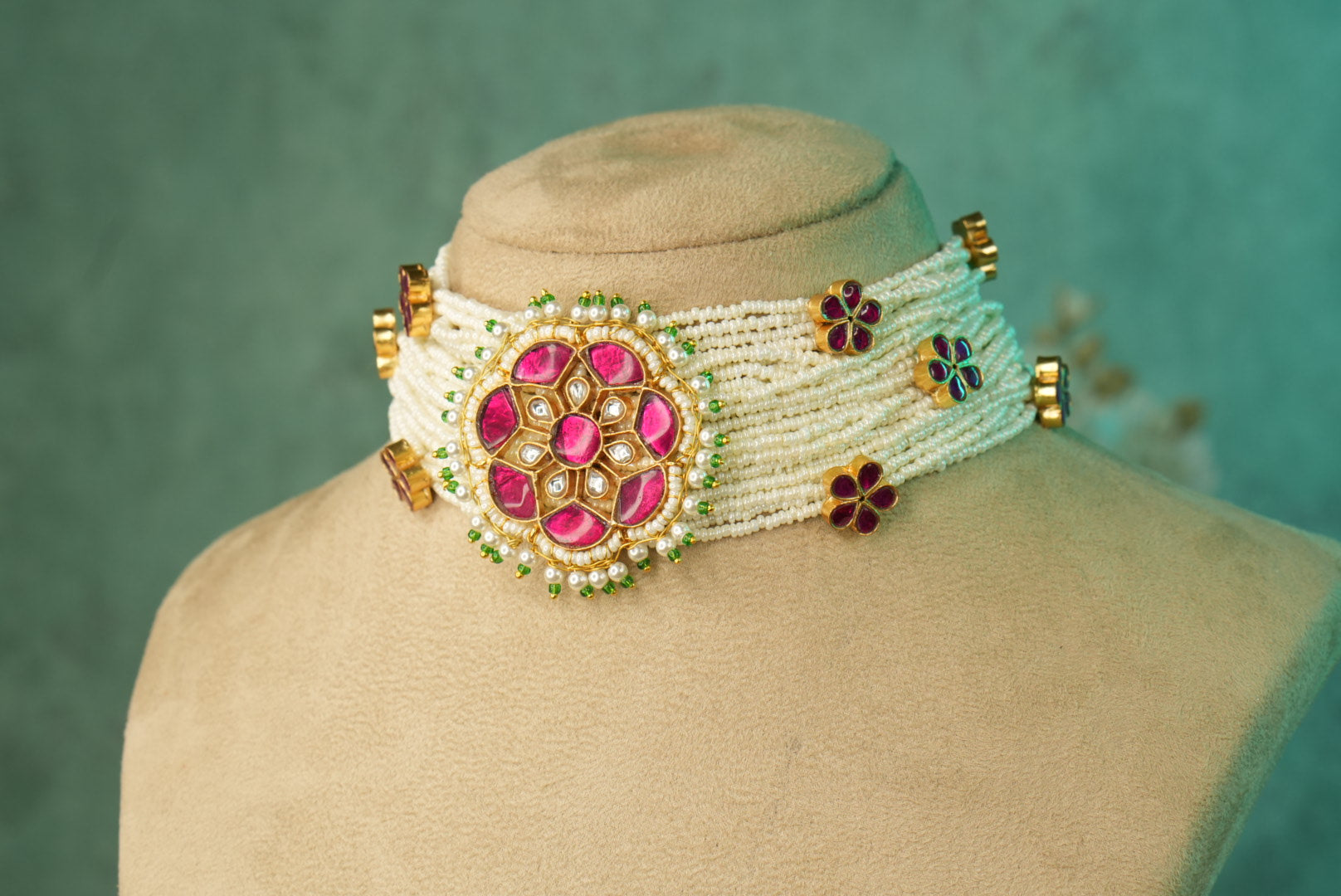 Featuring gold polished Kundan Choker Set in silver mixed with brass metal