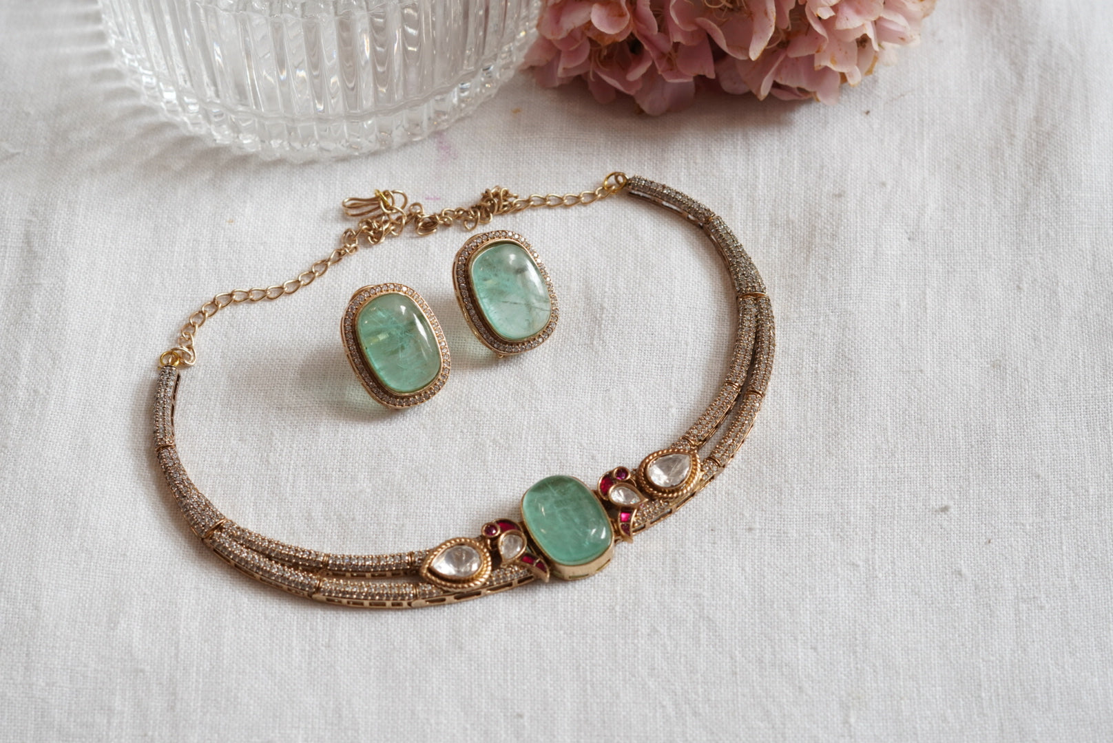Light Green Polki Necklace Set (4-7886)(B)